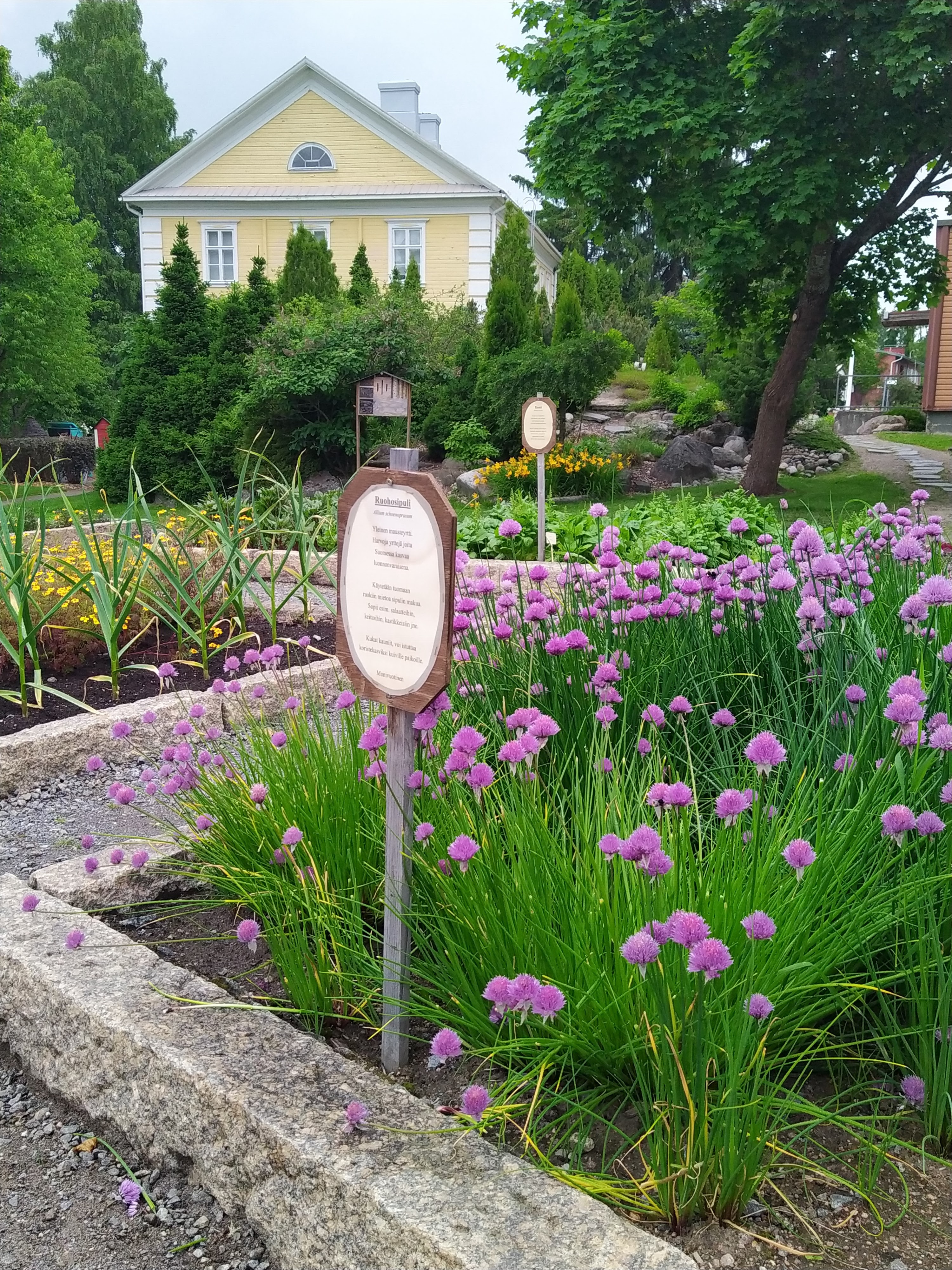 Puutarha on kaunis ja varsin monipuolinen, muutamia kivoja ideoita tuli vastaan. Puutarha koostuu useammasta alueesta, meikäläistä hyötytarhuria viehätti erityisesti erilaisten syötävien kasvien runsaus. Alueella on myös pieni kahvila, ja vähän kotieläimiäkin löytyy.
